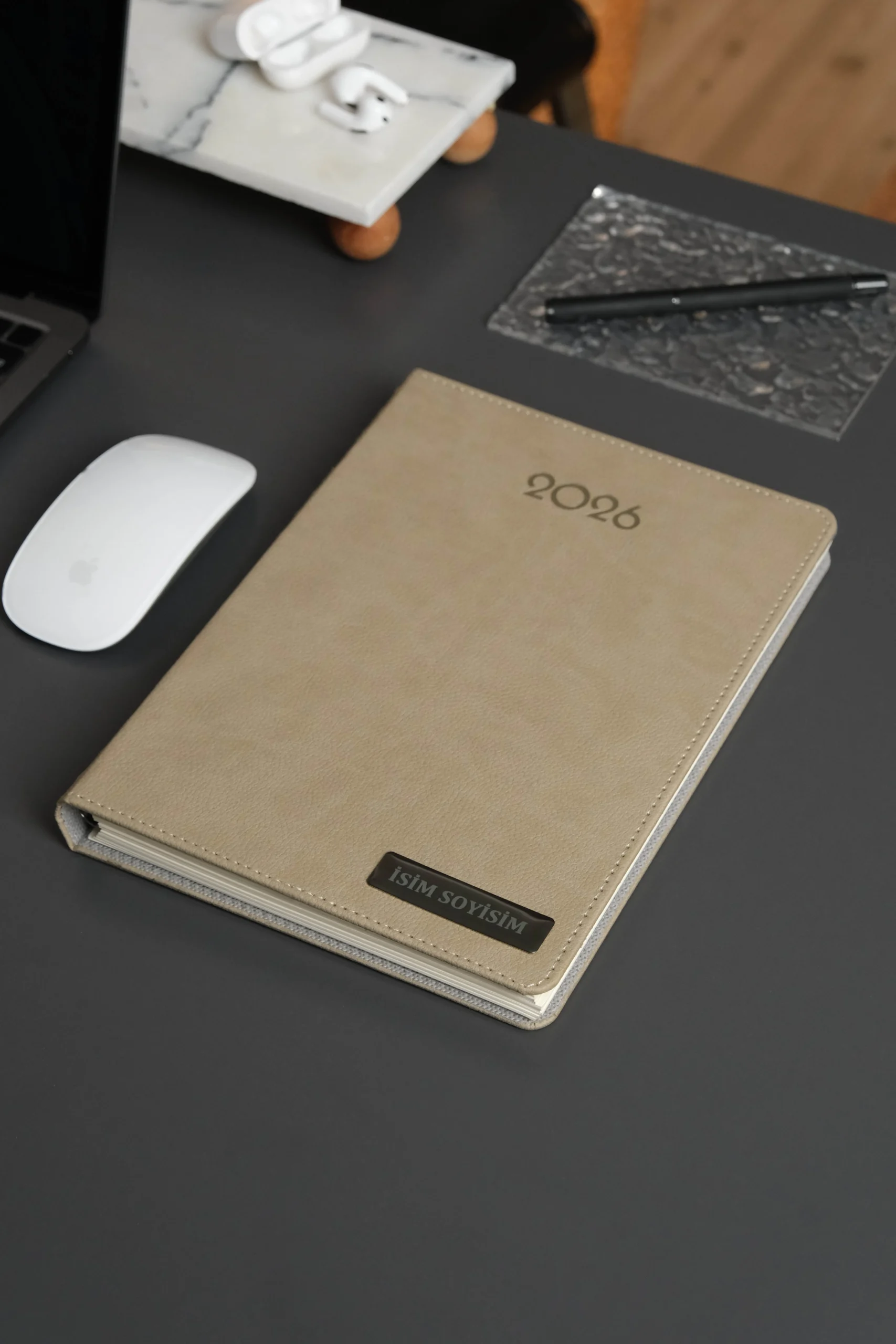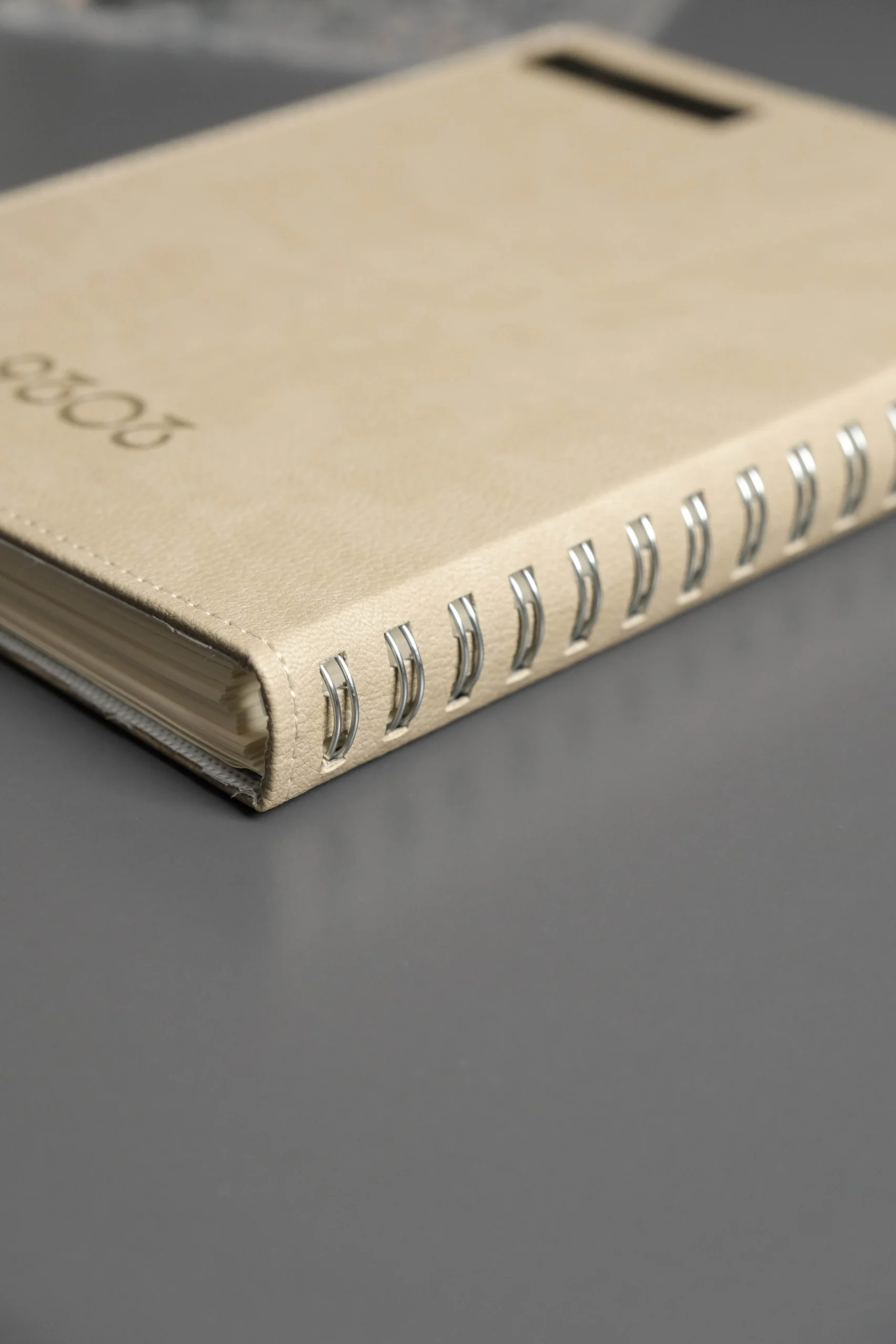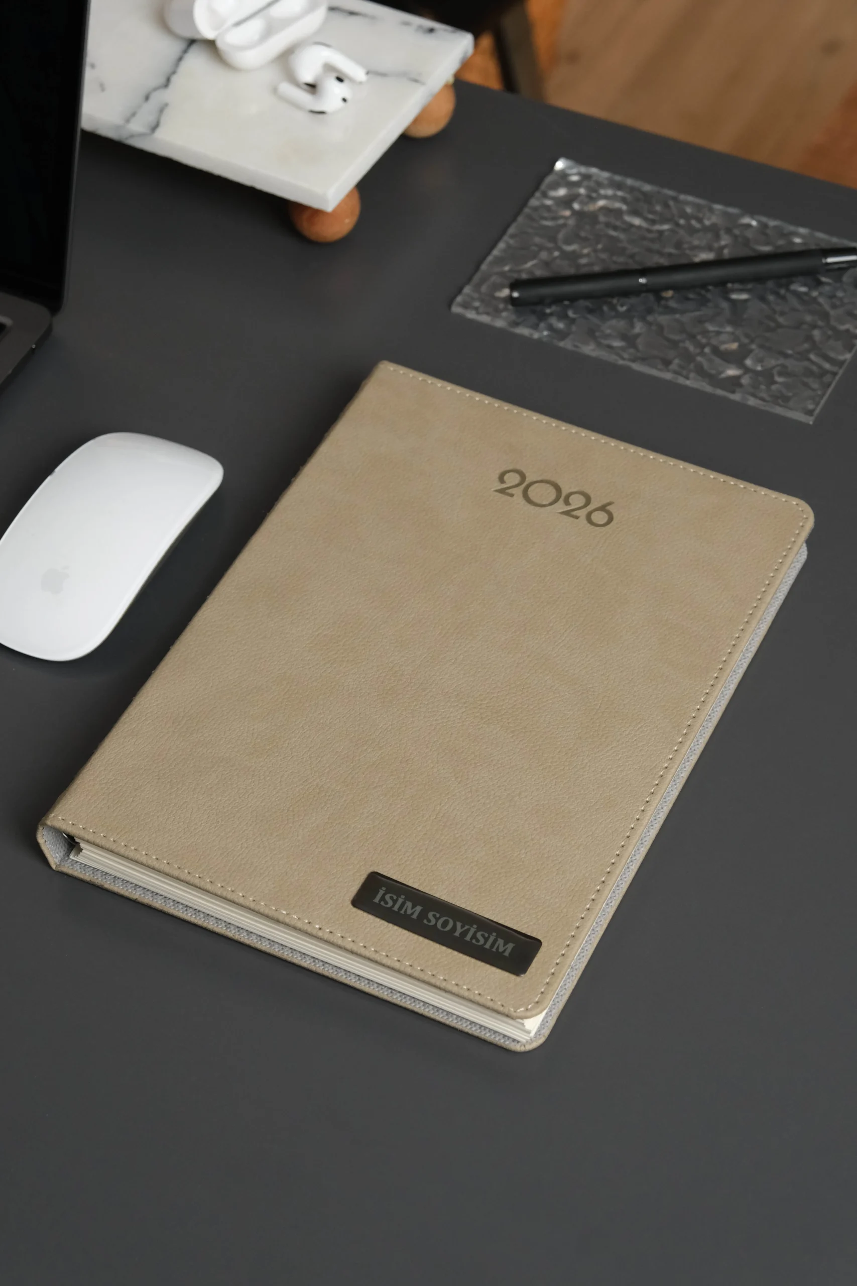 Kişiye Özel İsimli Düz Krem Vegan Deri Gizli Spiralli 2026 Ajanda