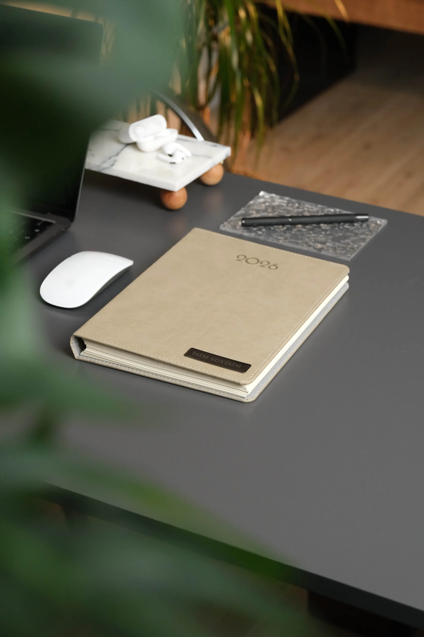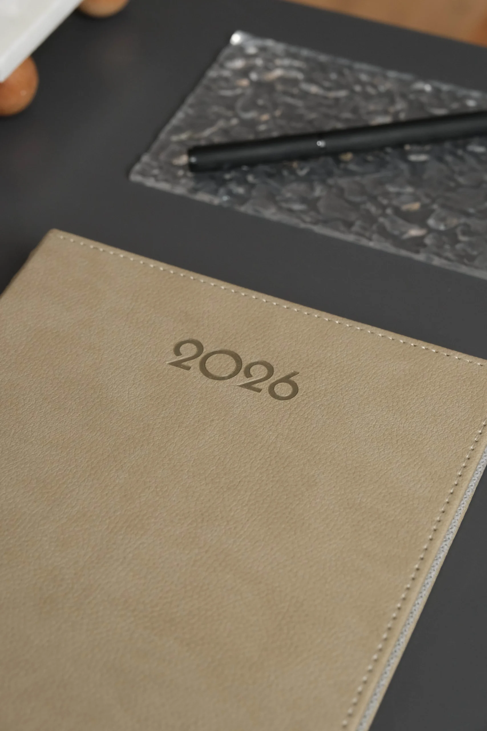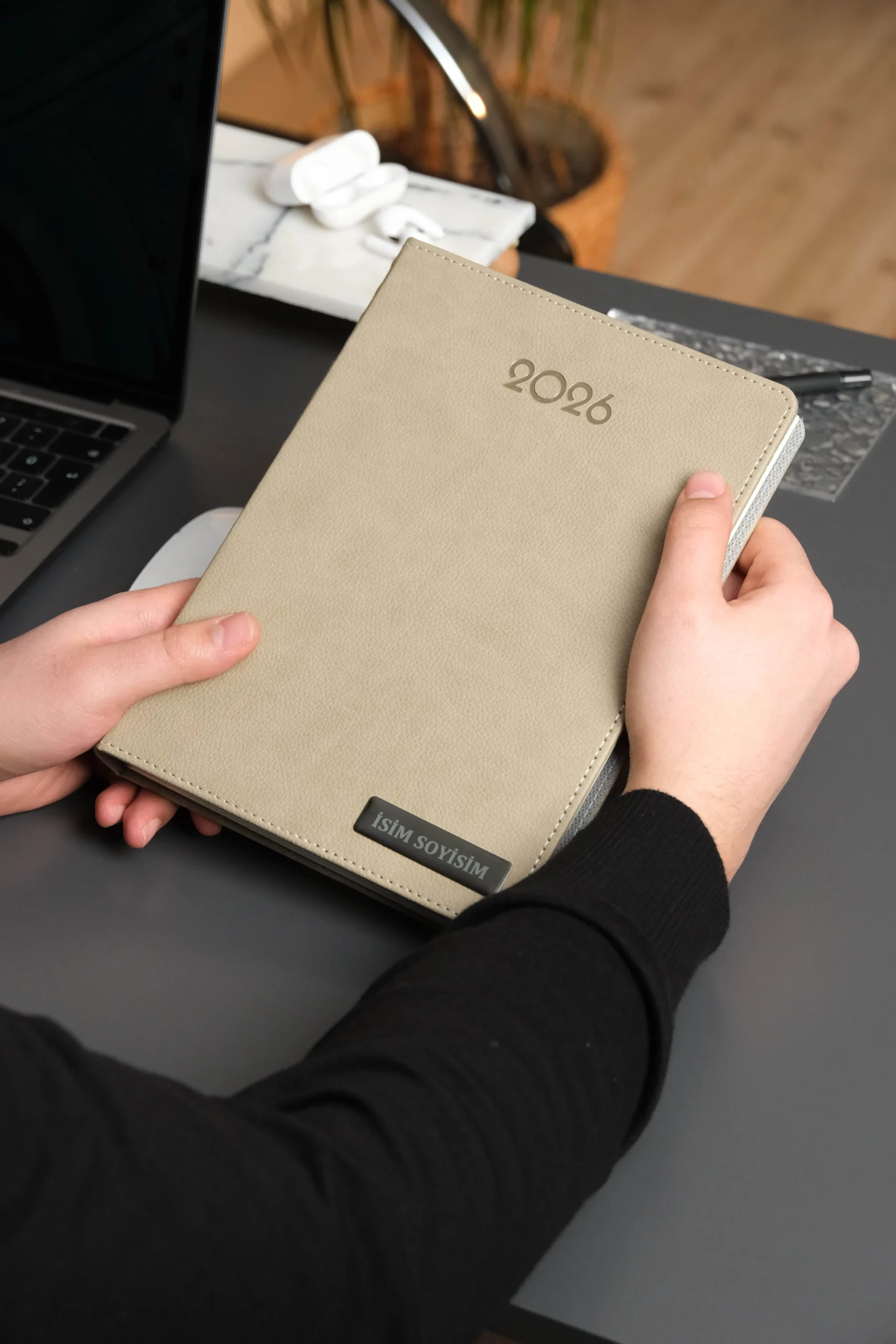 Kişiye Özel İsimli Düz Krem Vegan Deri Gizli Spiralli 2026 Ajanda