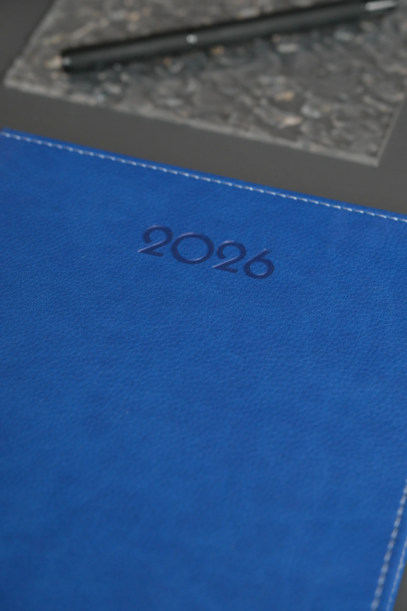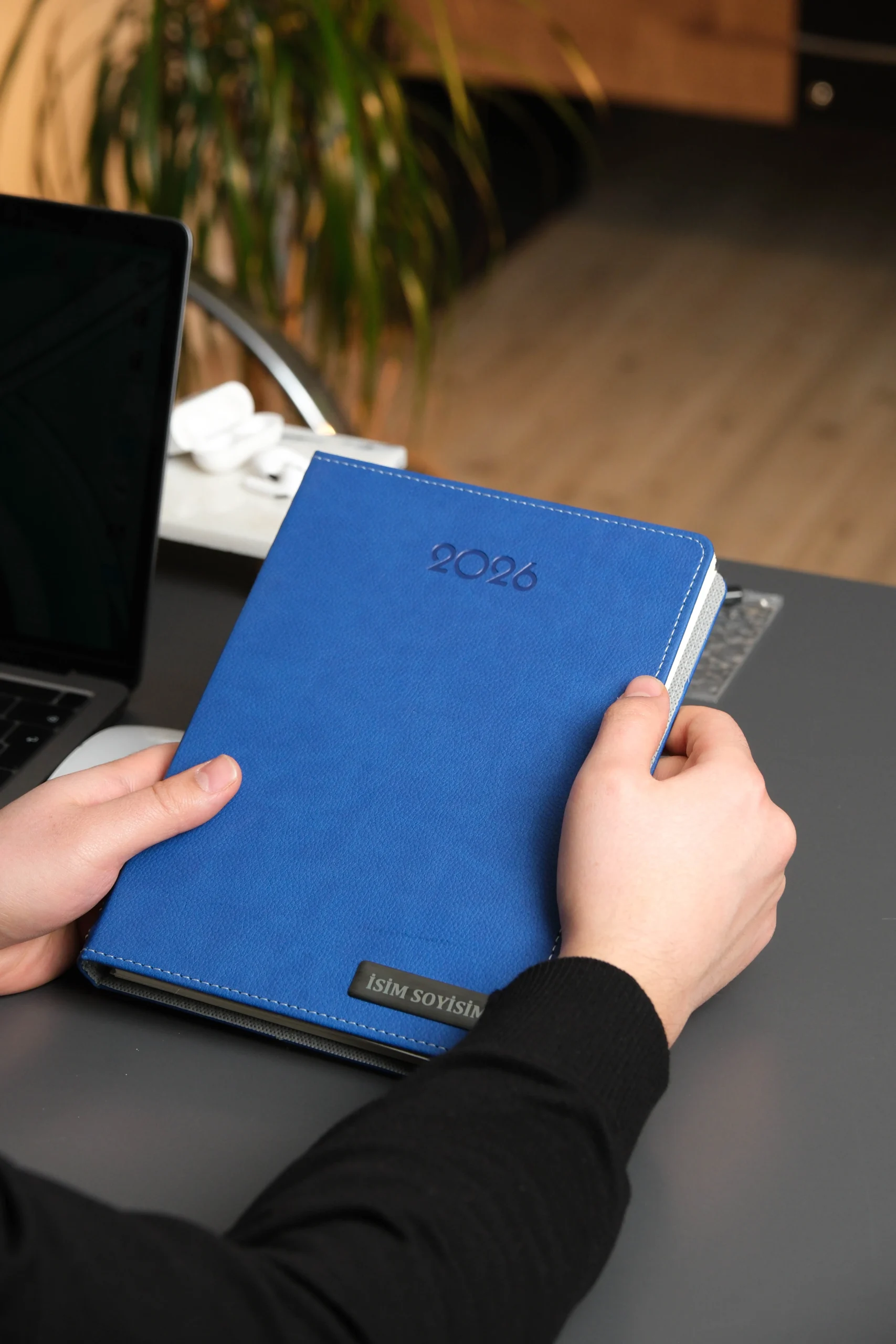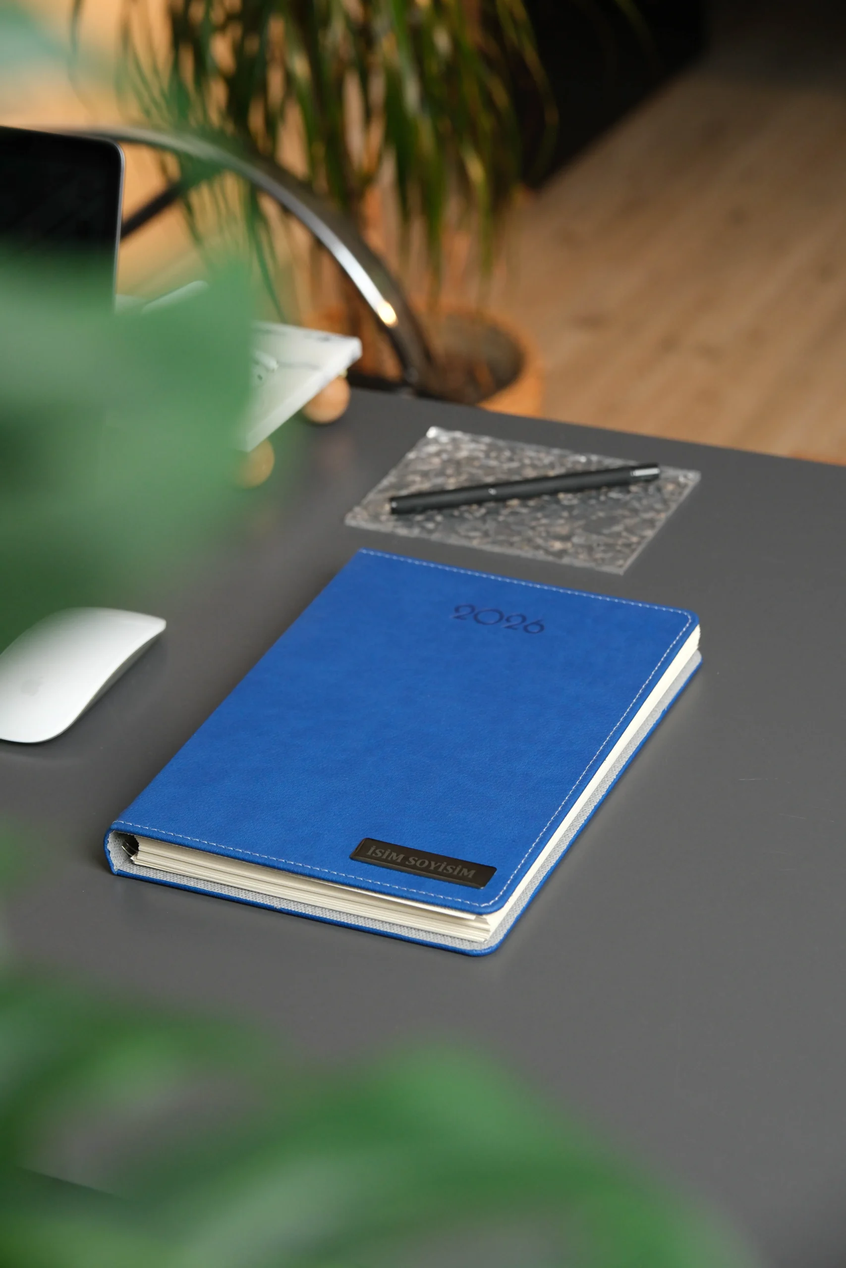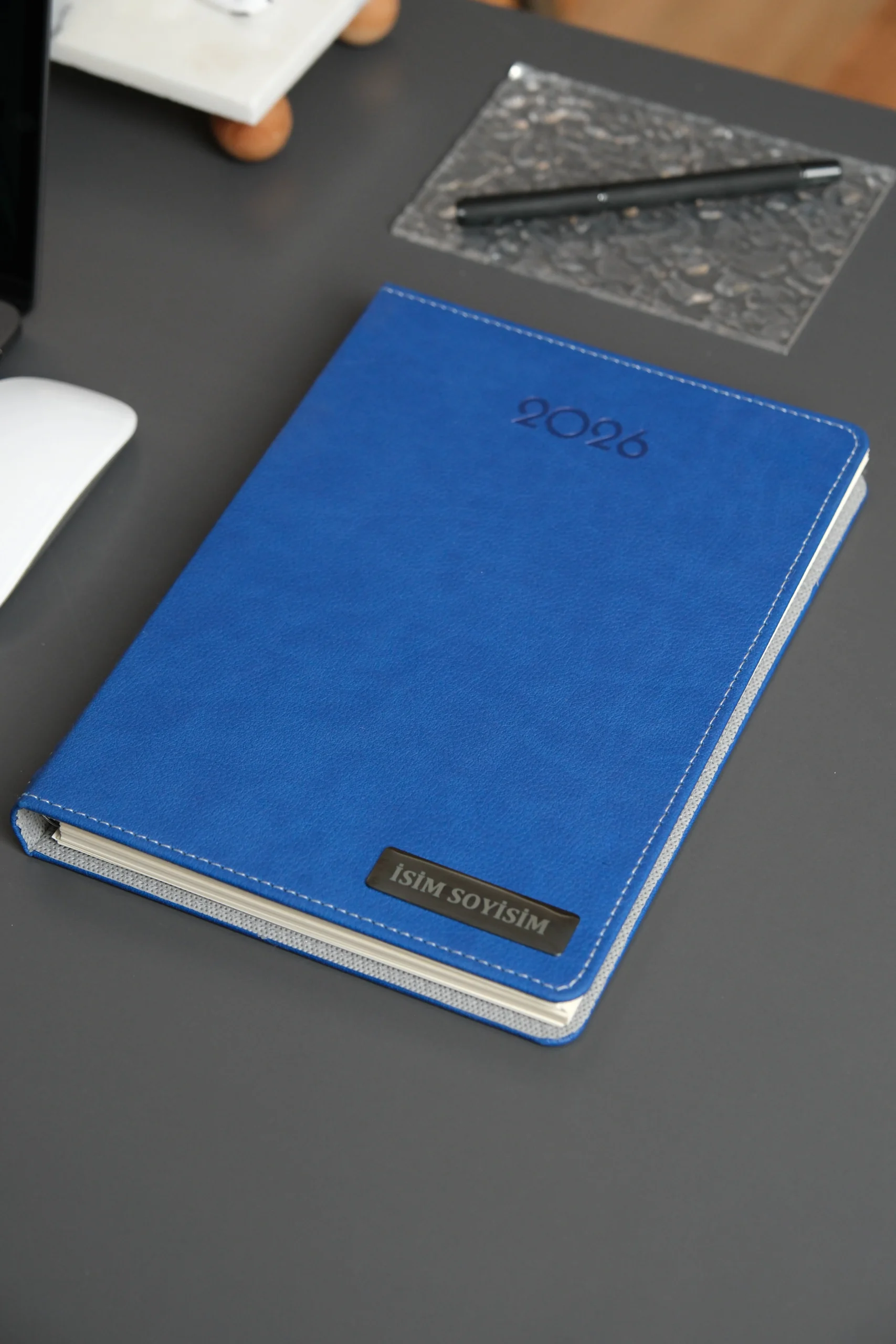 Kişiye Özel İsimli Düz Lacivert Vegan Deri Gizli Spiralli 2026 Ajanda
