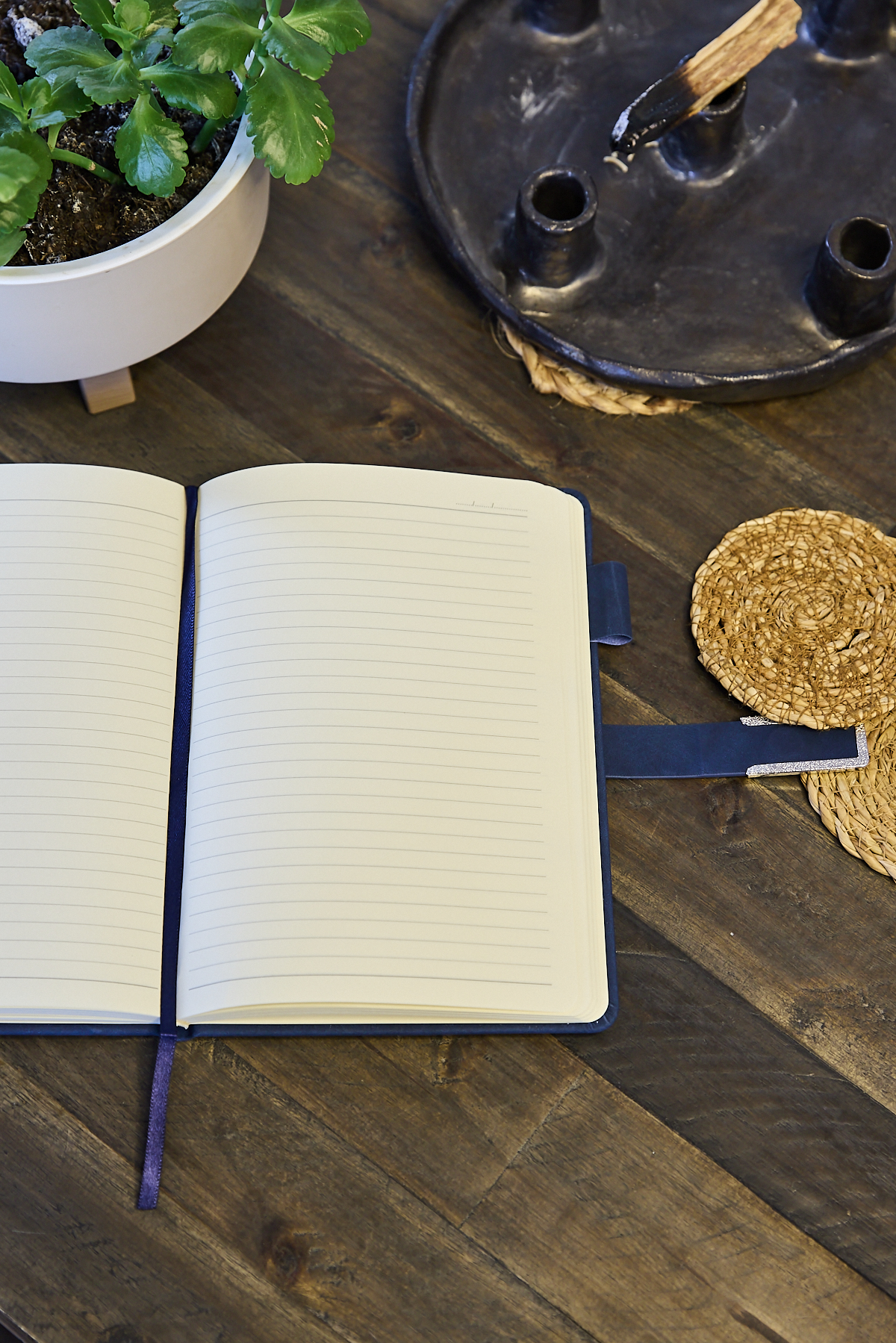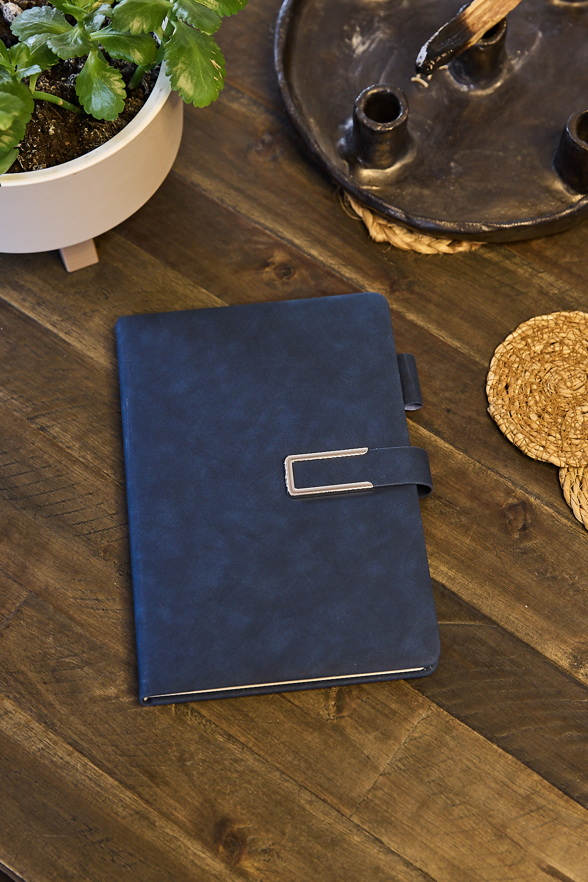 Kişiye Özel Lacivert Kalem Tutucu Vegan Deri Metal Mıknatıslı Kilitli 224 Sayfa Çizgili Not Defteri