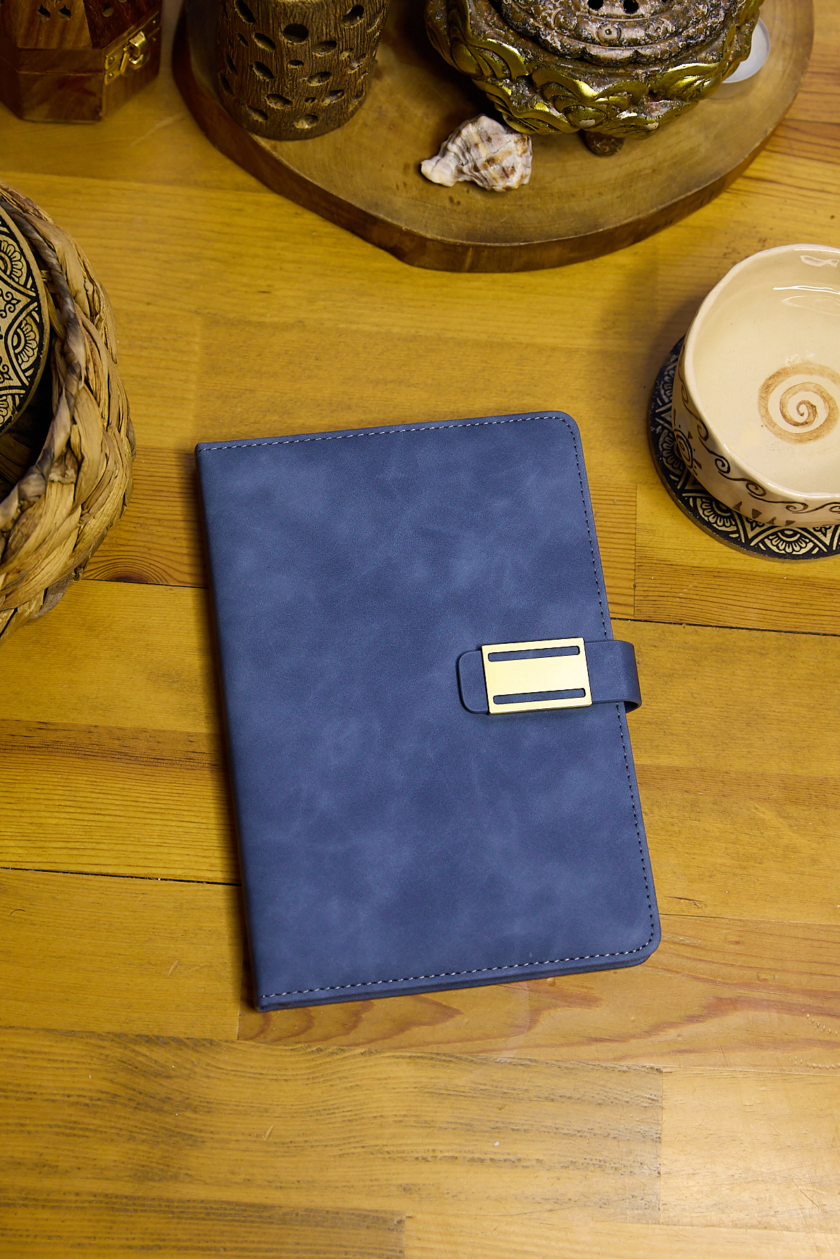 Kişiye Özel Mavi Vegan Deri Metal Mıknatıslı Kilitli 224 Sayfa Çizgili Not Defteri